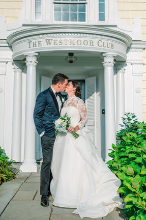 Inspired by the classic blue and white hues of a Nantucket Summer, Brittany and Luke's vision was to create a timeless Nantucket wedding while incorporating their love of each other and love of Nantucket into as many details as possible! Their wedding weekend started with an intimate, alfresco dinner on the lawn of Great Harbor Yacht Club that opened up into a welcome cocktail party for all of the wedding guests. Custom lighting structures and a double sided bar made this event a perfect harbor-side celebration to start the weekend. Friday they hosted all of their guests at Cisco Brewers for a Brewery Bash - a must have stop on their weekend as that is where they met! Custom silicone wristbands that read "bACK to where it all began" were guests entry into the brewery. The wedding ceremony and reception took place at the Westmoor Club. The grand steps leading down to the lawn made for the perfect entrance for guests and then the bride into the wedding ceremony. They were seated with a glass of champagne and overlooked the ceremony in front of the iconic flag pole that featured a surprise flag with their monogram and a ceremony arch that was covered in blue and white hydrangeas. Cocktail hour was held on the side lawn and featured the Nantucket must have of a raw bar. Guests found their seats by grabbing oragami sailboats and made their way into the tented reception space that was decked out in florals, greenery, trees and special lighting that were accented with gold and monogramed navy touches. The couple partied the night away with the Sultan's of Swing- a favorite band of Nantucket couples!